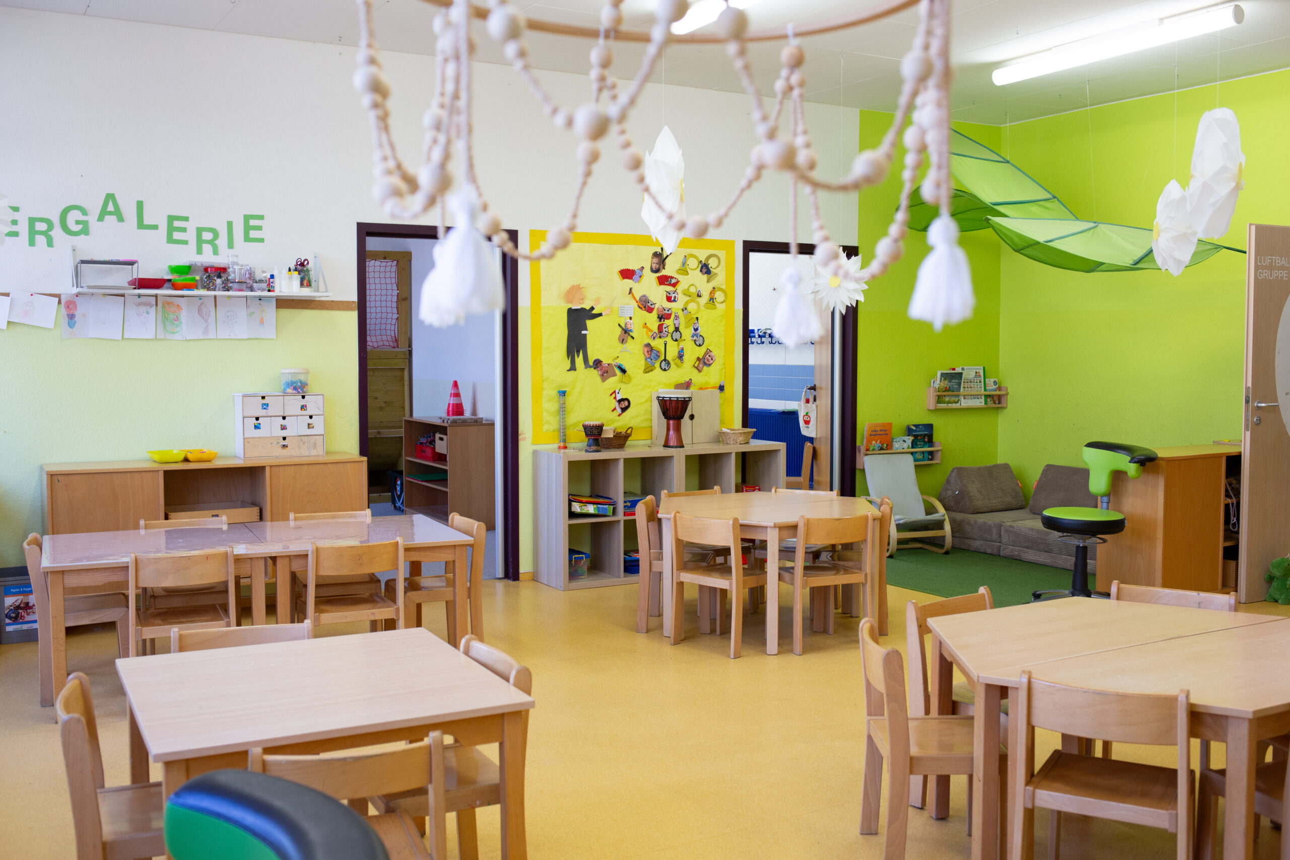 In der Luftballongruppe sind ungefähr 25 Kinder. In diese Gruppe werden jedes Jahr alle Kinder (älter als drei Jahre) aufgenommen, die dann in der Regel drei Jahre den Kindergarten durchlaufen.